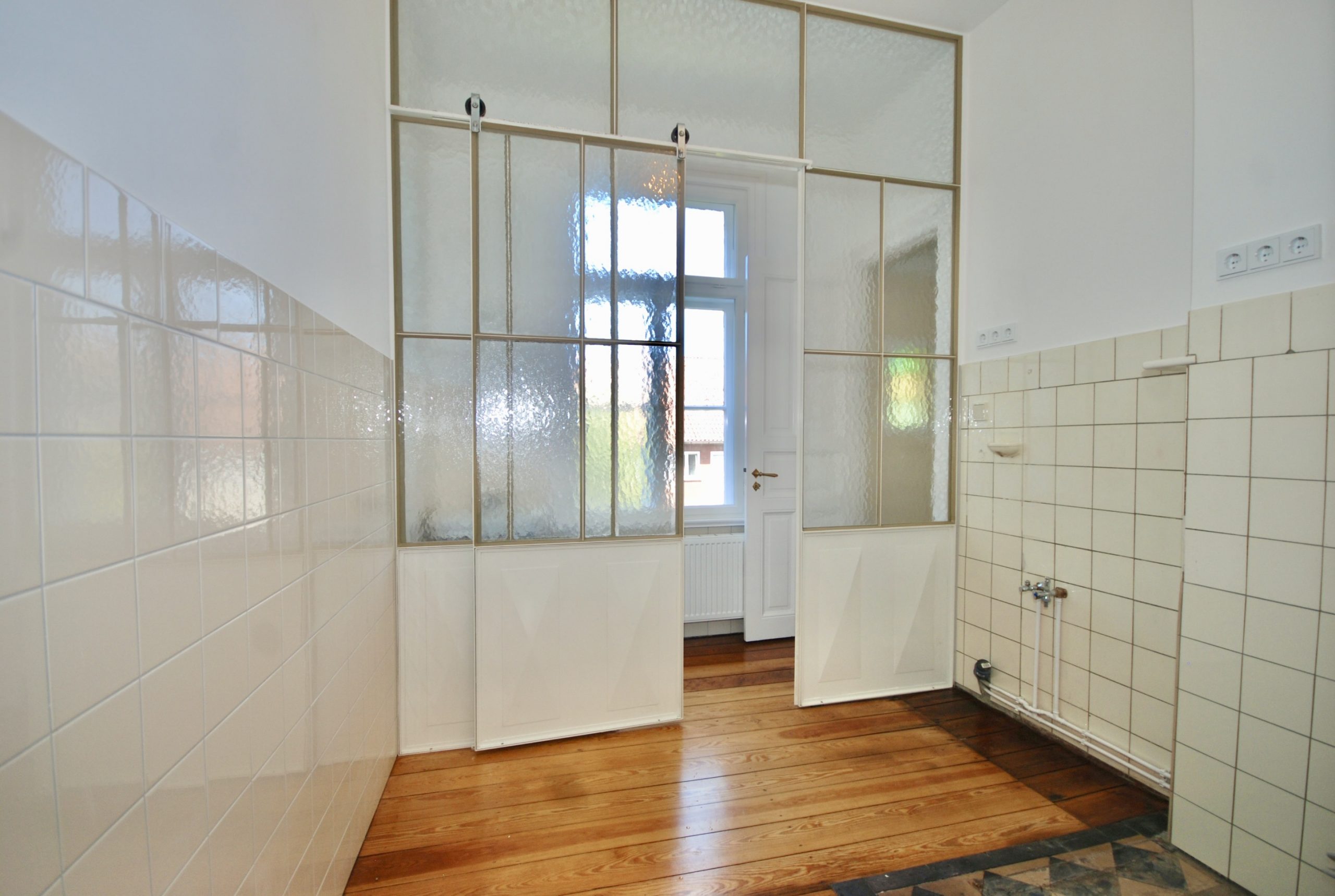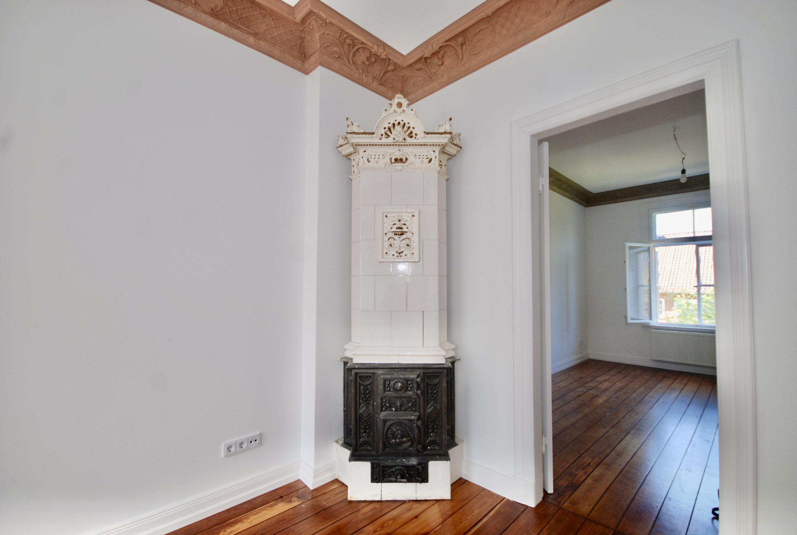Die in 2022 aufwendig sanierte und modernisierte Wohnung verfügt über einen Flur, Duschbad, separates WC, Küche und 3 Zimmer. In der Wohnung sind die typischen Stiltüren noch vorhanden. Der Kachelofen dient ausschließlich zur Dekoration.