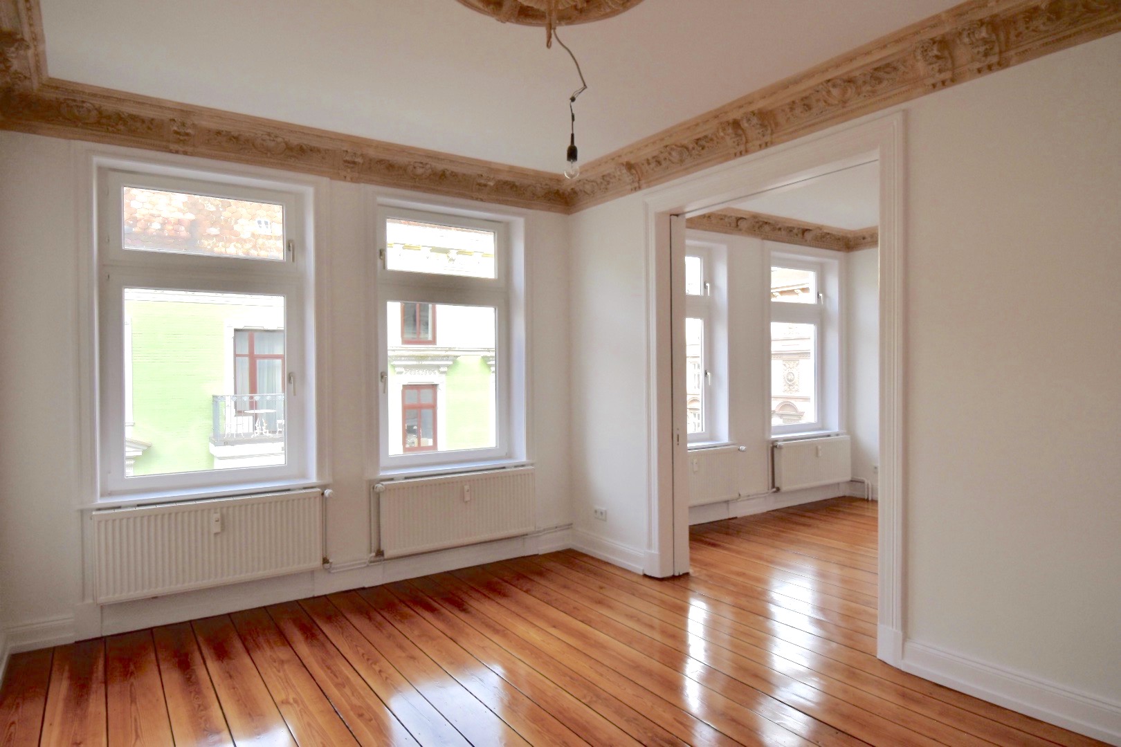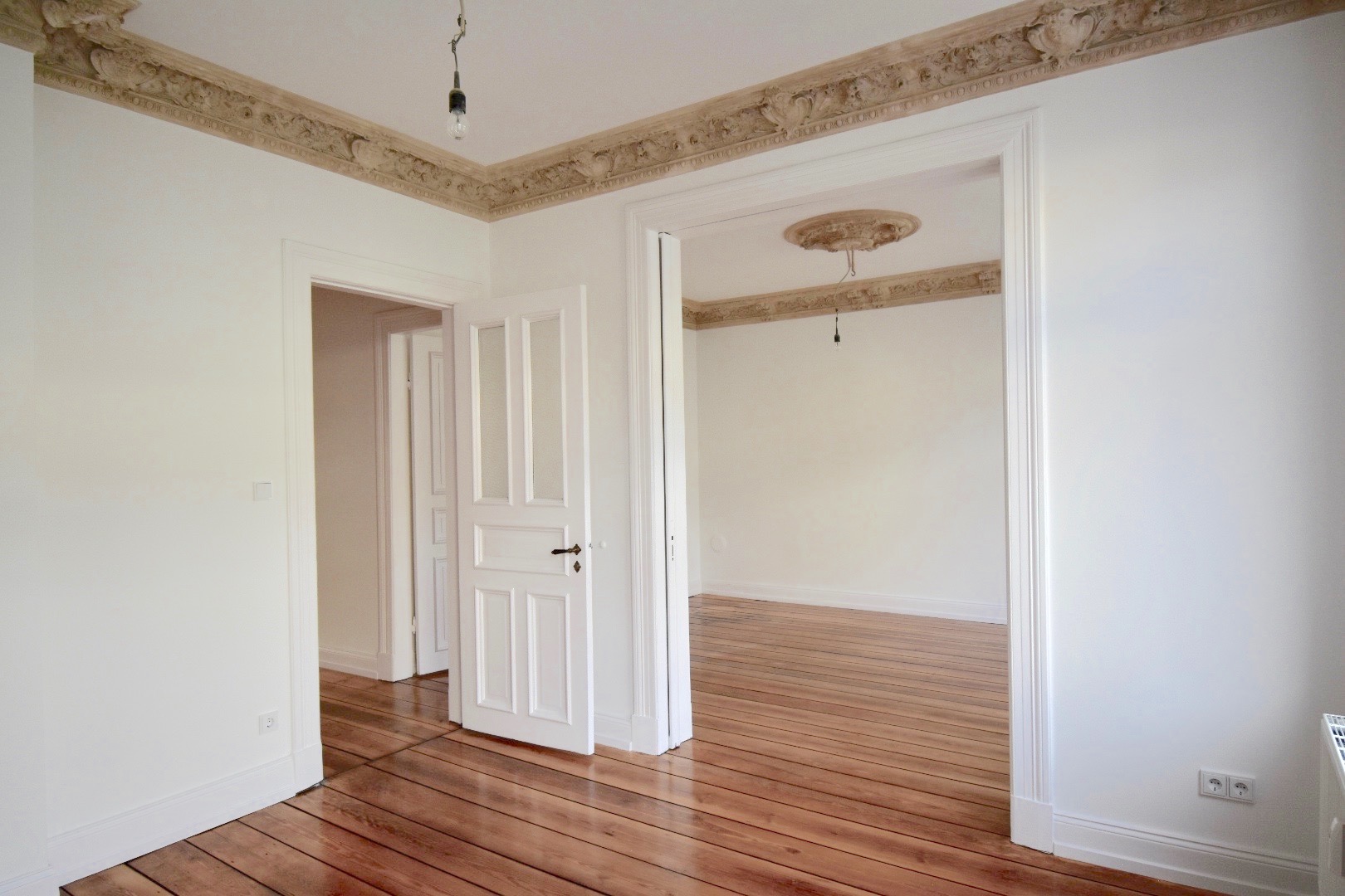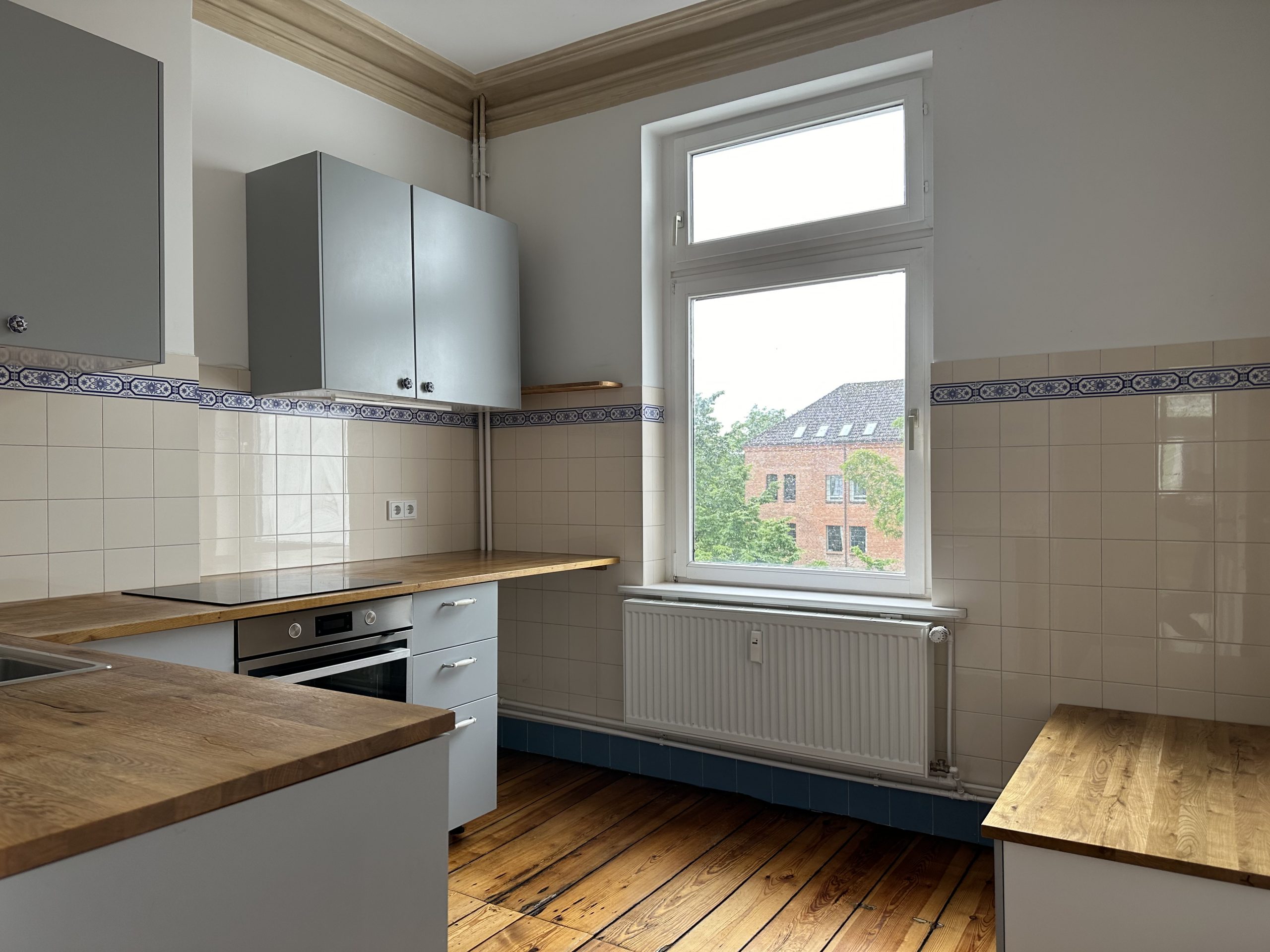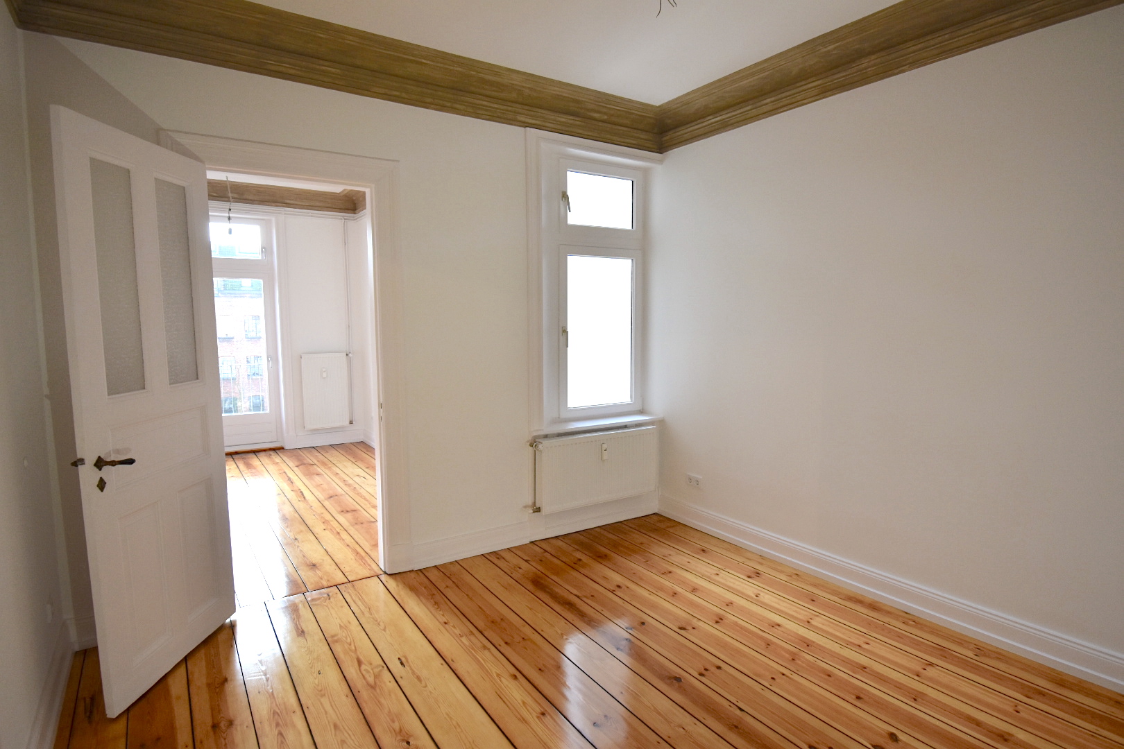 Die wunderschöne Altbauwohnung wurde im Jahr 2020 aufwendig modernisiert und renoviert. Sehr viel Wert wurde auf den Erhalt von originalgetreuen Details von Altbauelementen gelegt. Über einen großen Flur gelangen Sie in die 4 Wohnräume, die viel Platz für Ihre individuelle Einrichtung bieten. Die zur Susannenstraße gelegenen Zimmer 1 und 2 sind mit einer doppelflügeligen Schiebetür miteinander verbunden. Sämtliche Stiltüren sowie tlw. auch der Originalstuck sind in der Wohnung vorhanden. Die Wohnküche wurde neu gefliest und befindet sich im hinteren Teil der Wohnung. Auch das separate WC sowie das Badezimmer wurden neu gefliest und mit neuen Sanitärartikeln ausgestattet. Die sich in der Wohnung befindlichen Pitchpinedielen wurden im Zuge der Modernisierung abgeschliffen und abschließend versiegelt. Vermieterseitig wird die Wohnung ohne Kücheneinrichtung vermietet. Die von den Mietern eingebrachte Einbauküche kann gegen eine Abstandszahlung übernommen werden.