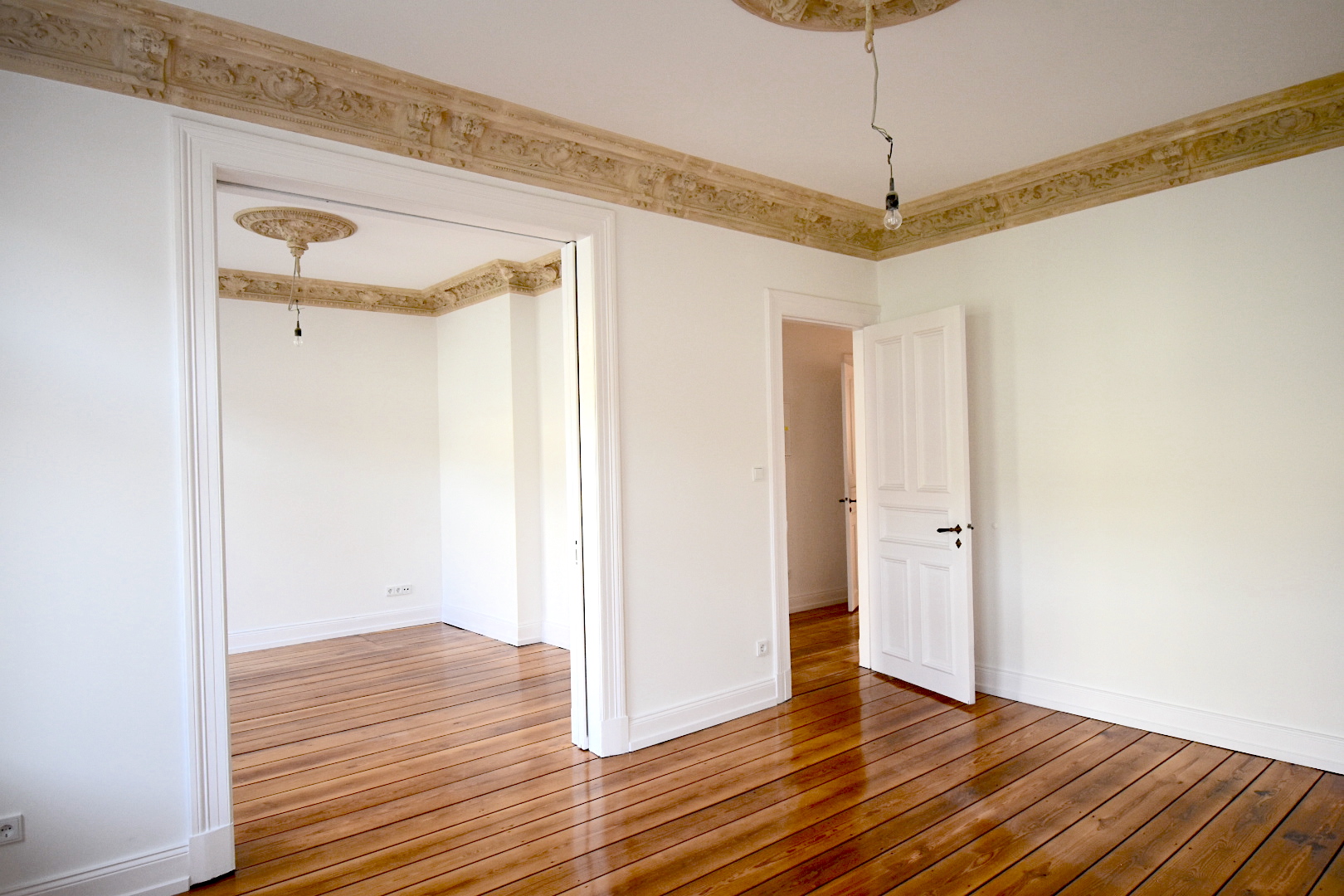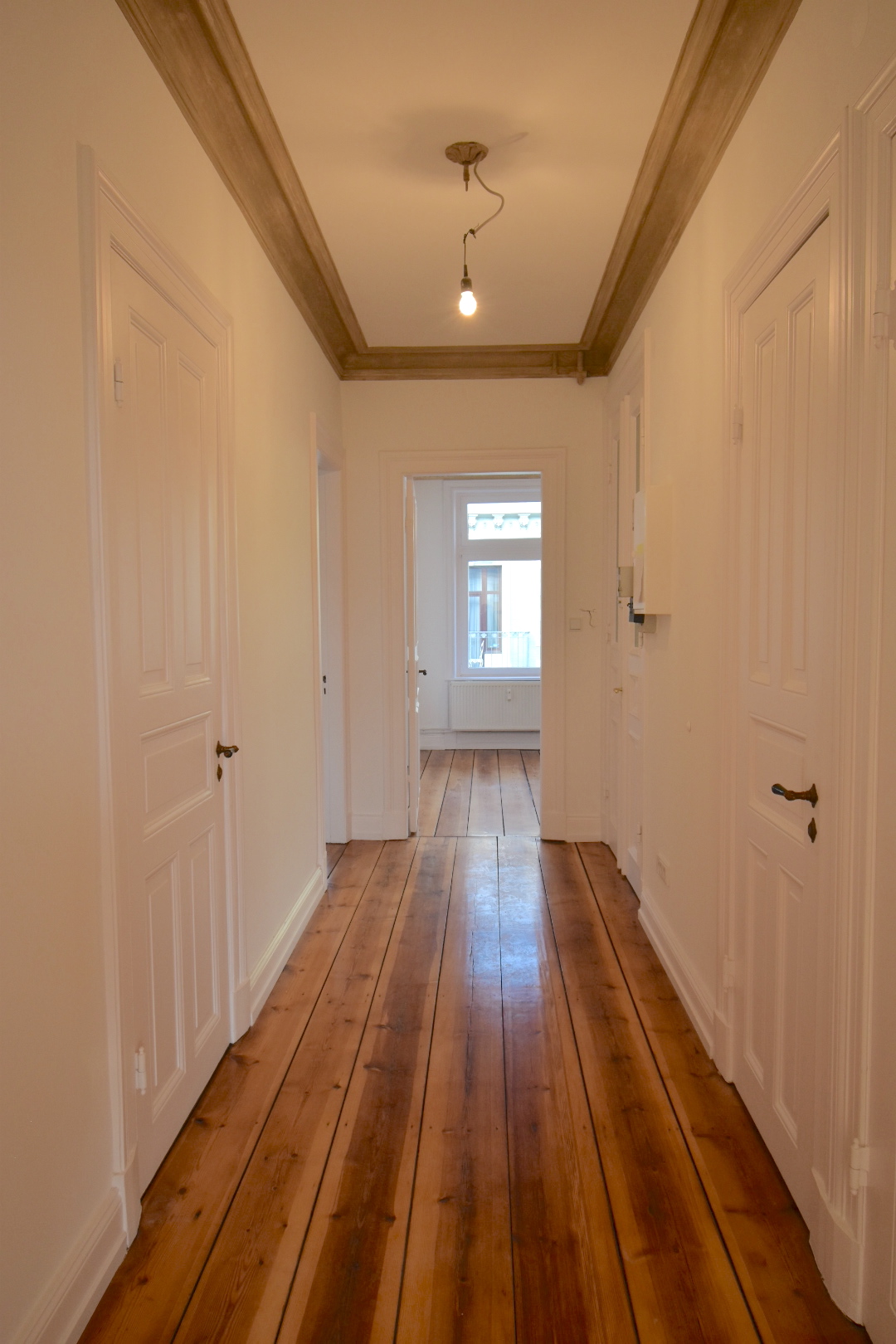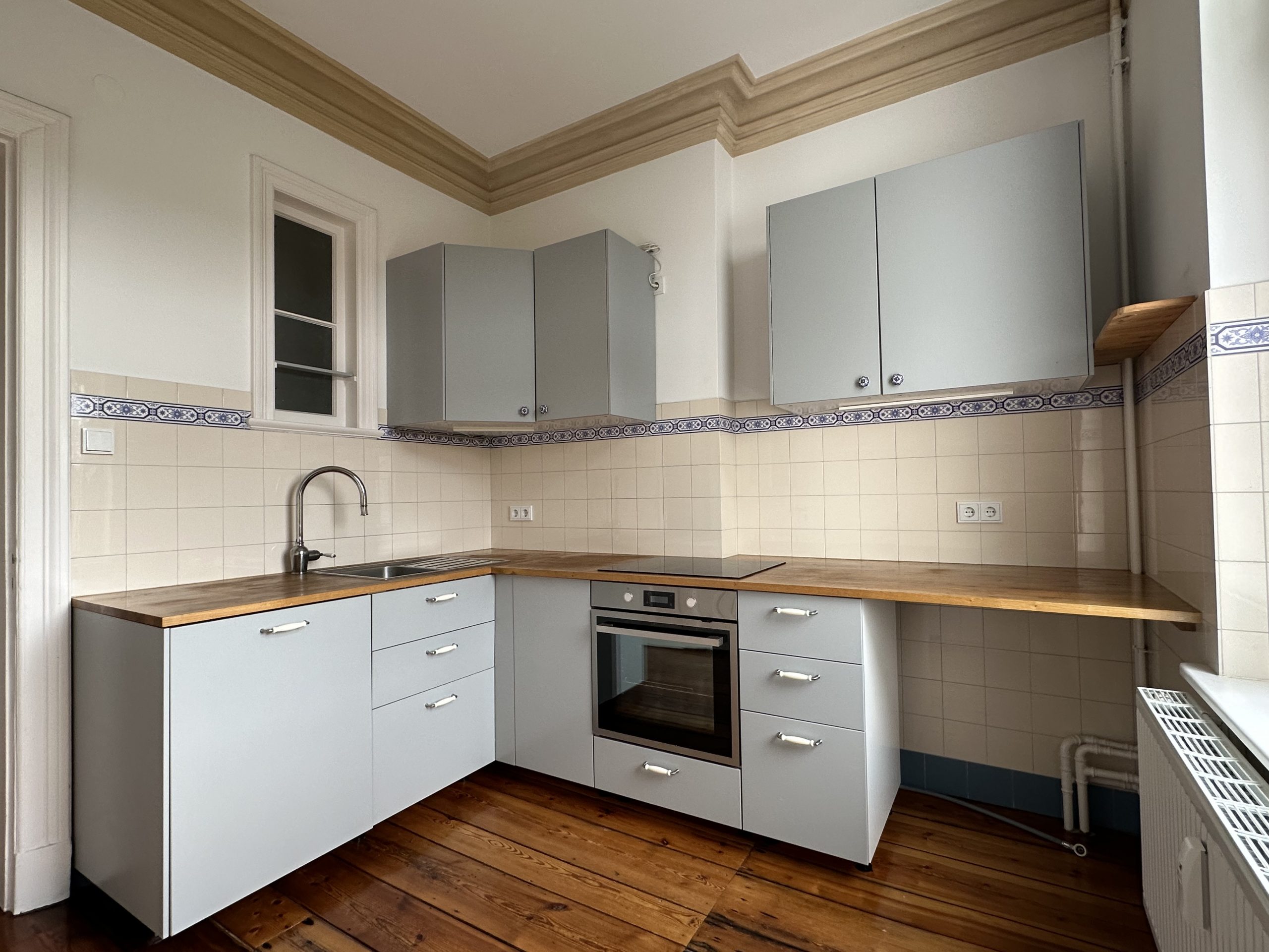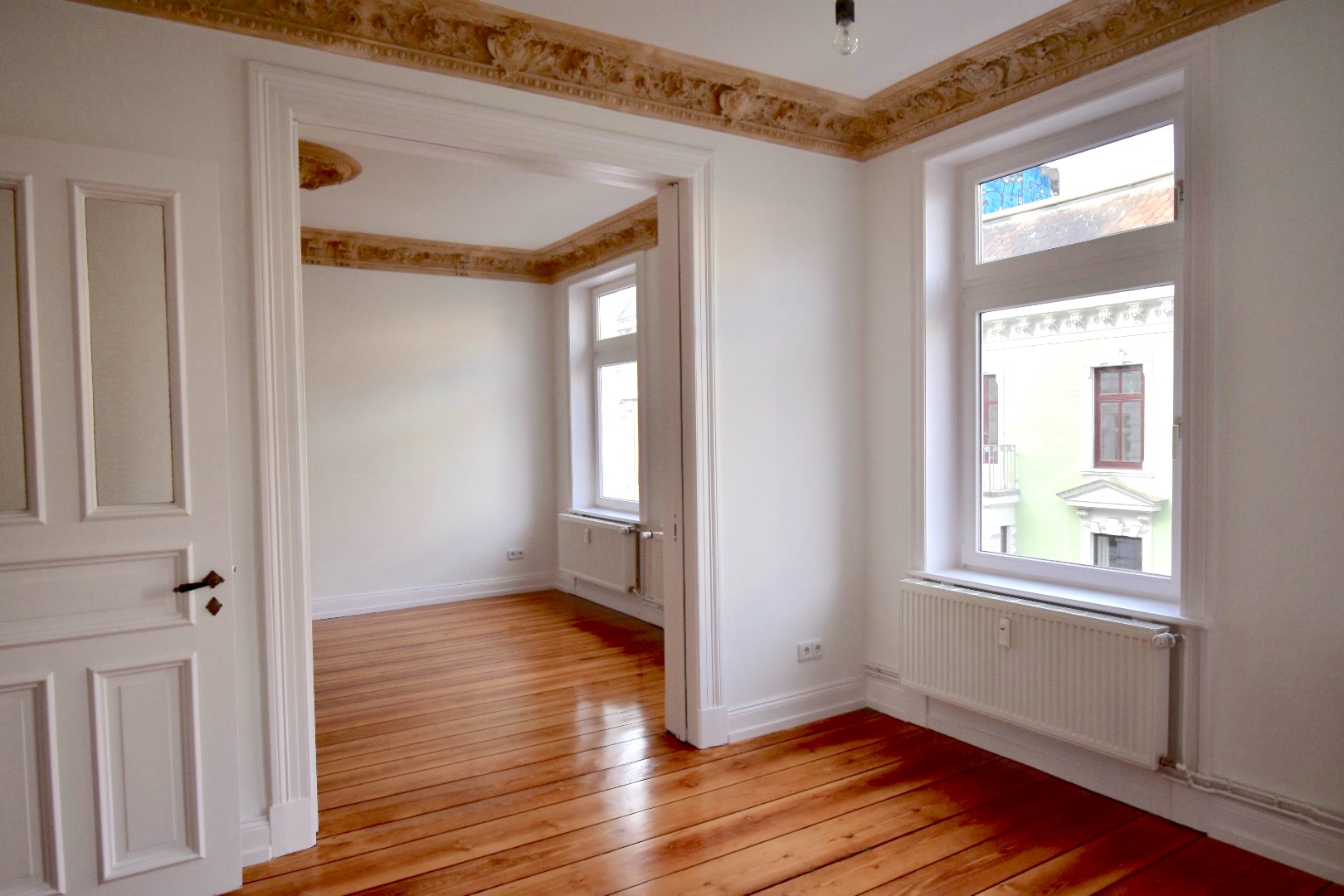 Die wunderschöne Altbauwohnung wurde im Jahr 2020 aufwendig modernisiert und renoviert. Sehr viel Wert wurde auf den Erhalt von originalgetreuen Details von Altbauelementen gelegt. Über einen großen Flur gelangen Sie in die 4 Wohnräume, die viel Platz für Ihre individuelle Einrichtung bieten. Die zur Susannenstraße gelegenen Zimmer 1 und 2 sind mit einer doppelflügeligen Schiebetür miteinander verbunden. Sämtliche Stiltüren sowie tlw. auch der Originalstuck sind in der Wohnung vorhanden. Die Wohnküche wurde neu gefliest und befindet sich im hinteren Teil der Wohnung. Auch das separate WC sowie das Badezimmer wurden neu gefliest und mit neuen Sanitärartikeln ausgestattet. Die sich in der Wohnung befindlichen Pitchpinedielen wurden im Zuge der Modernisierung abgeschliffen und abschließend versiegelt. Vermieterseitig wird die Wohnung ohne Kücheneinrichtung vermietet. Die von den Mietern eingebrachte Einbauküche kann gegen eine Abstandszahlung übernommen werden.
