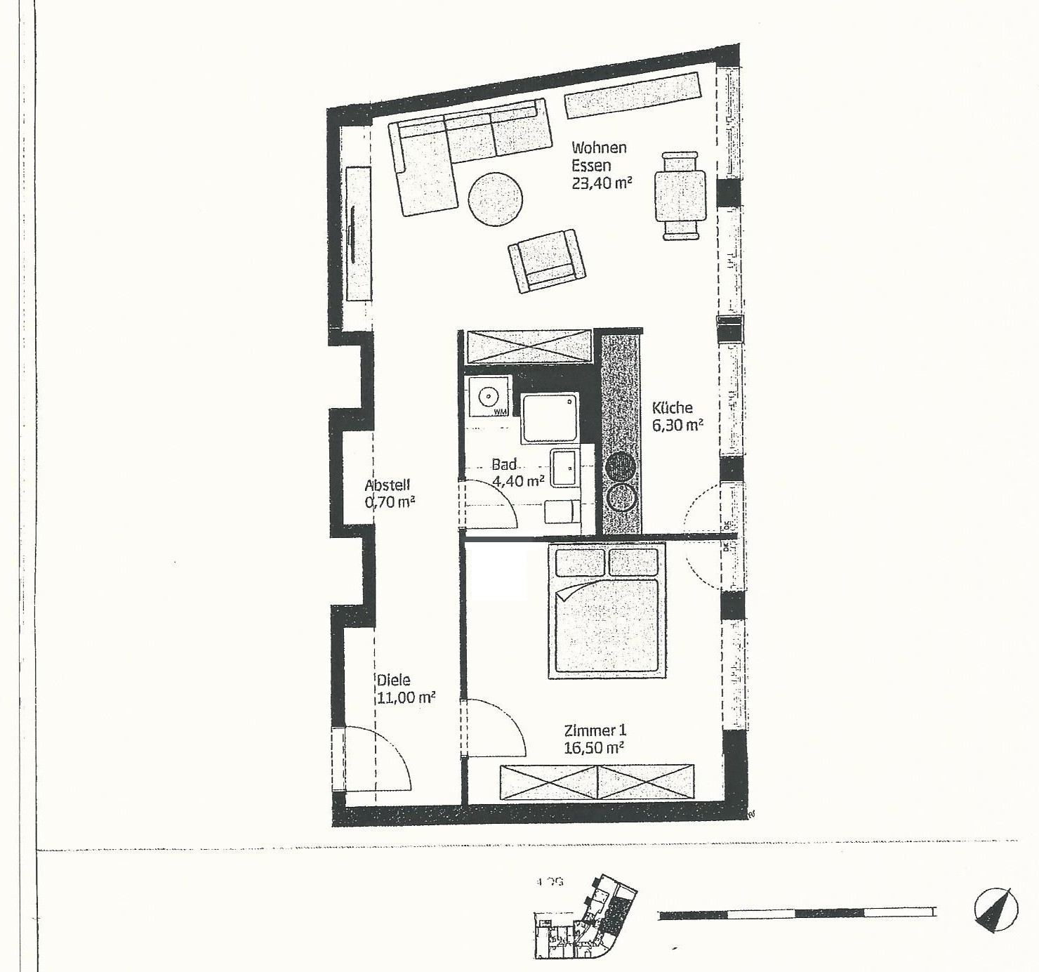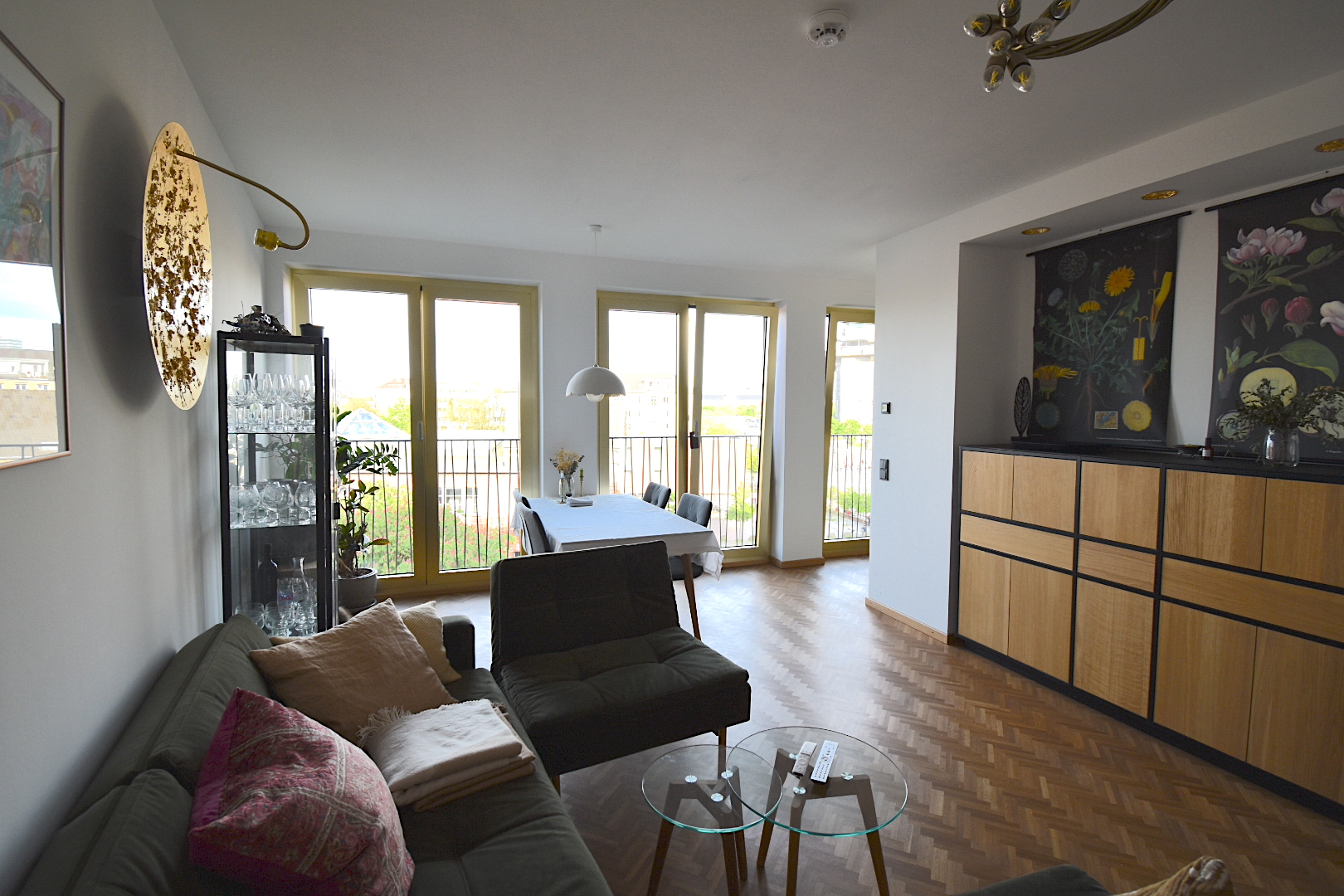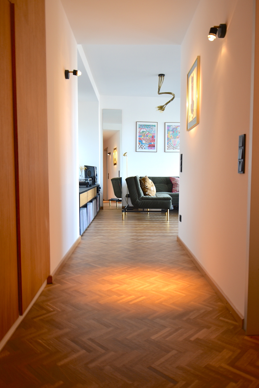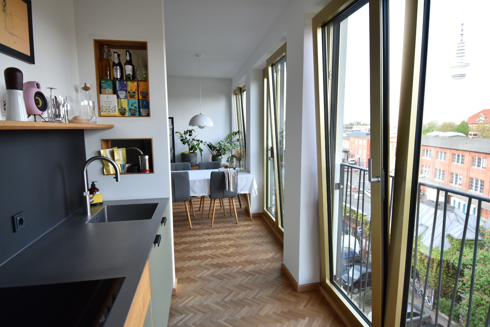 Es handelt sich bei der Wohnung um einen im Jahr 2015 fertiggestellten Neuaufbau. Sie verfügt über Flur, modernes Duschbad mit Wasser- und Abwasseranschluss zum Betrieb einer Waschmaschine, einen Schlafraum sowie einem Wohnraum mit angrenzendem offenen Küchenbereich. Wohnzimmer und Küchenbereich sind ebenso wie das Schlafzimmer mit einer durchgehenden bodenständigen Fenstergruppe ausgestattet. Die Oberflächen der Wände sind glatt und mit Farbe angestrichen. Der Fußbodenbelag besteht in den Wohnräumen durchgehend aus Stäbchenparkett, im Duschbad aus dunklen Bodenfliesen. Weiterhin verfügt die Wohnung über einen Multimedia-Anschluss. Die Beheizung der Wohnung erfolgt über eine Fußbodenheizung. Aus der Wohnung hat man einen fantastischen Blick über die Rindermarkthalle auf das Millerntor Stadion, die Elbphilharmonie, den Michel, den St. Pauli Bunker, den Fernsehturm, das Mövenpick Hotel, untergebracht im alten Wasserturm und vieles mehr. Die Wohnung wird vermieterseitig ohne Kücheneinrichtung vermietet. Die vom derzeitigen Mieter eingebrachte Einbauküche kann gegen eine Abstandszahlung übernommen werden.